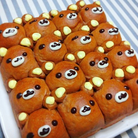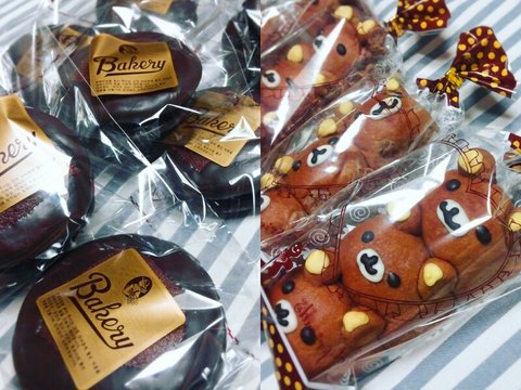 리락쿠마 초코연유모닝빵이에요! 여러마리가 막 뭉쳐있어서 귀엽죠?!!ㅋㅋ 어린아이들에게 선물이라고 줬는데 되게 좋아하더라구여..뿌듯했어요>< 포장도 하고나니까 더귀엽죠 ㅎㅎ