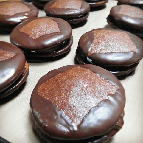 이건 아실테지만 전주 풍년제과 초코파이!를 직접만들어 본거에요. 풍년제과는 버터크림+딸기잼을 샌드하지만 전 생크림+딸기잼을 샌드했어요.