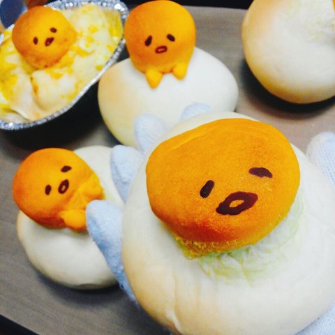 구데타마 계란샐러드빵이에요! 생각보다 오븐에서 많이 부풀어서 깜짝놀란...ㅋㅋ