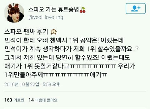 민석: 저희가 1위 할 수 있을까요...? 엑소엘: 당연하죠!