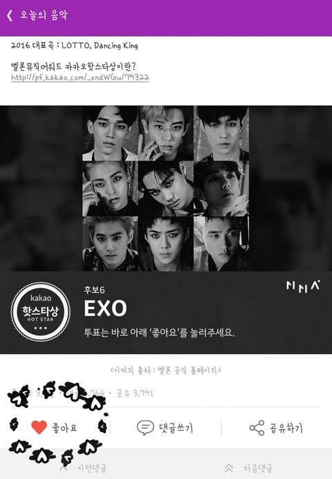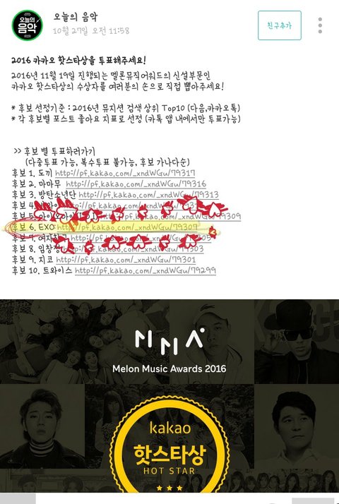 아까 낮에 공지로 올라온거알고 지금 첸백시랑 투표할것 많은거 아는데 이것도 빼먹지 말고 하자~!~!~