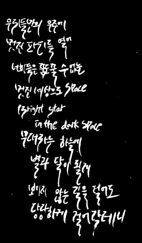 캘리 써봐써..;ㅅ; 배경도 바꿔보고 싶었는데 캘리가 잘 안 보여서..:ㅅ; 엄청 오랜만에 써서 비루하지만 가사가 너무 예뻐서 써봤어ㅠㅠㅠ 진짜 그 이삐 친구 짱짱..ㅜㅜ♡체고야..
