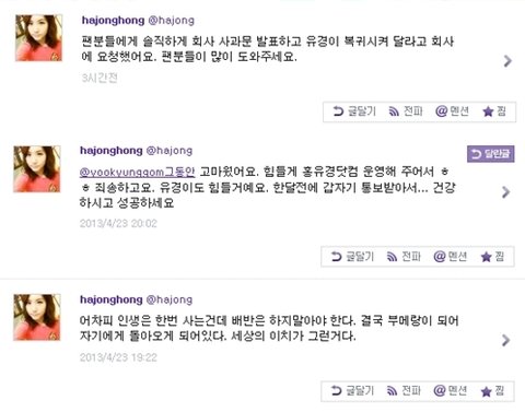 12. 에이핑크 전 멤버 홍유경 지가 퇴출시켜 놓고 학업때문에 어쩔 수 없이 탈퇴했다고 기사냄ㅋㅋ 다른 멤버들은 부모님이랑 찾아가서 미안하다고 싹싹 빌어서 살아남은 거고ㅋㅋ 밑에는 유경이 아버님 sns 사진