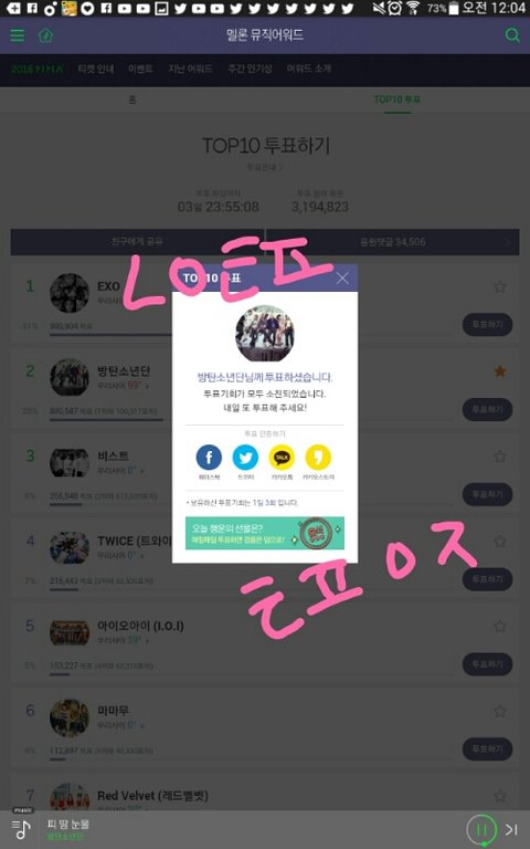 오늘 컴백하는 분들이 많아서 1시간에 한 번씩 스밍 안끊겼나 수시로 확인해야해 우리 더 밀려나면 안돼 주간 인기상도 매일 투표해서 애들 상받게 하자