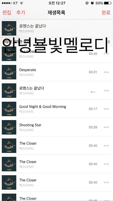 스밍목록 나오기 전에 내 맘대로 스밍목록만들어서 재생중 ㅎㅎㅎㅎ허허 나는 별빛멜로디니깐><