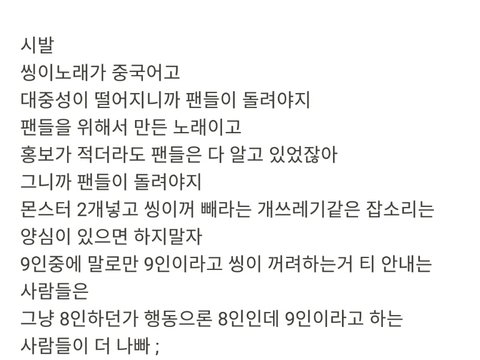 그럼 장이씽 노래를넣고 몬스터를빼자고? 쟤미쳤냐? ㅋㅋㅋㅋㅋㅋㅋㅋㅋㅋㅋ