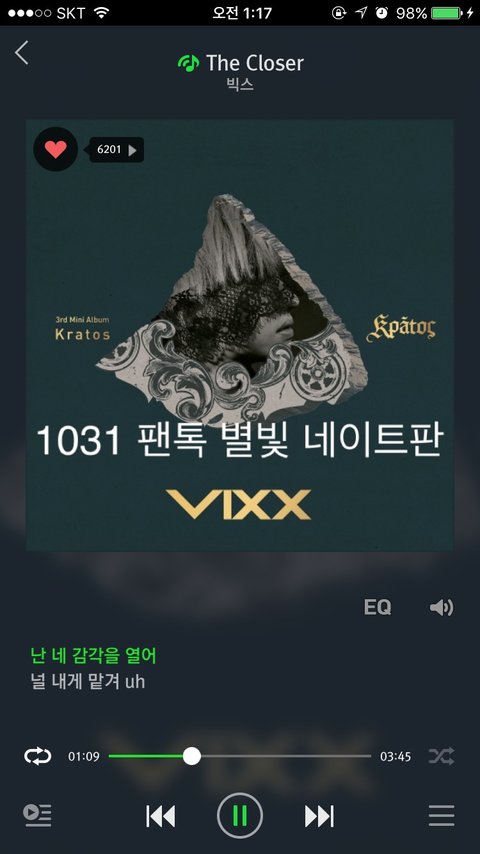 촉이 나쁘지 않은편인데 그냥 뭔가 다 잘될 것 같은 느낌이 든다..ㅎㅎ 별빛들 다같이 으쌰으쌰 해서 빅스의 노력이 헛되지 않게 해주자!!! 음원다운+음원스밍+뮤비스밍+각종투표 등등 할일이 너무 많지만 별빛파워로 다 뿌셔버리자!!!!!!!!!!