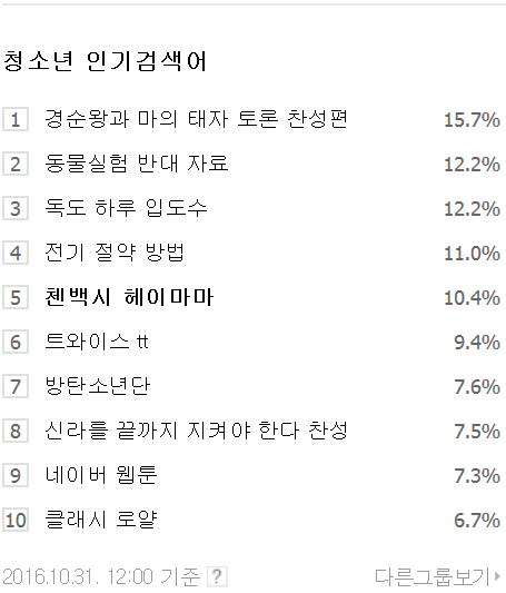 점심시간이라서 검색해보니까 실검에 핫토픽 키워드에 인검에 난리네 ㅋㅋㅋㅋ 첸백시 더 더 대박나자!! 웅녀들 맞점해!!!