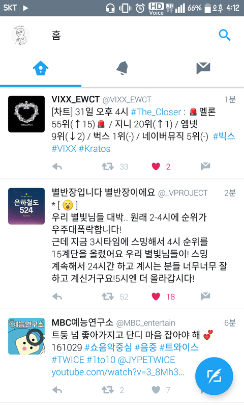 멜레기가 조큼 말을 안들어서그렇지 다른덴 진짜 순위유지도 잘하고있구 지금 시간대에 멜ㄹ온도 올라왔어!애들이 열시미 준비해서 나온만큼 우리도 열시미해서 순위유지도하구 차트위로 쭉쭉 올라가자★