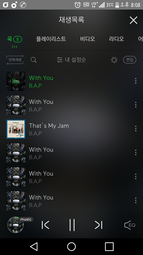 이런식으로 한곡한곡 검색해서 재생하거든?