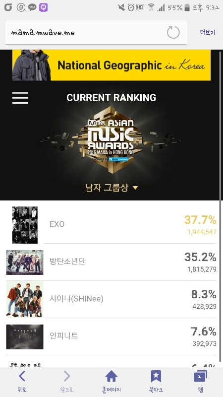 엑퀴들아 핑계 그만!!! ㅋㅋ 방탄5위 엑소유닛8위