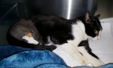 검둥이는 지난 태풍 차바때 뒷다리 대퇴부가 골절되는 큰 부상을 입었습니다.