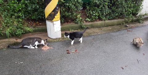 정착한 곳에 새로운 먹이터를 개설했고 예전과 다름없는 간식을 주고 있습니다.