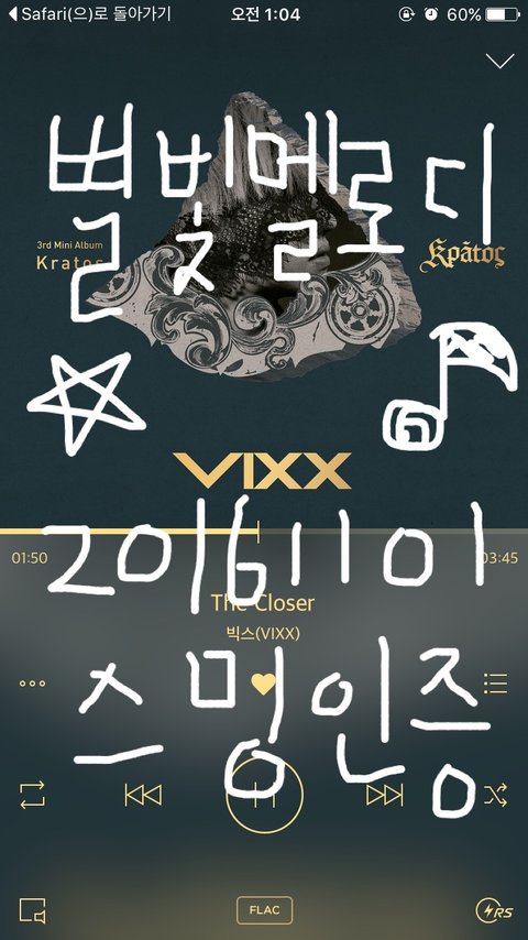 난..멜디지만 오늘 빅스 쇼케 알람보고 한시간 소리지르며 정자세로 관람 후 1200만 하트 포토타임때 혼자 난리친 멜디.........
