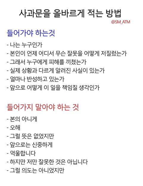 흠잡을게 없는 사과문이라고 평가받는 사과문이래. 급하게 하다가 다른 문제 생길 수도 있잖아? 특히 우리 입장 쓰는게 변명으로 보일 수도 있으니 더 조심해서 써야할 것 같아