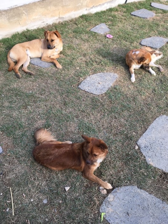저와 아이들은 서울에 살 때 하루에 2-3번씩 집근처 산을 다녀서 체력은 좋은 편임에도 불구하고 오는 길에 다리힘이 풀려서 좀 힘이 들었습니다. 리드하던 맏형 돌쇠가 누나 발소리가 신경쓰이는지 자꾸 뒤돌아보면서 걱정스런 눈빛을 보냈습니다. 막내지만 가장 덩치가 큰 우주가 중간에 길고양이를 쫓으려 해서 잠시 난감했지만 돌쇠가 제 대신 혼내줬습니다. 어리광이 많은 가장 작은 순돌이도 (우리집에서 10kg 가장 작습니다.) 꿋꿋이 같이 동행했습니다.