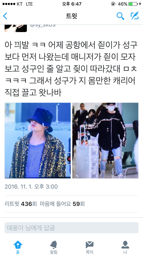 ㅋㅋㅋㅋ 모자 진짜 비슷하긴 하다ㅋㅋㅋㅋ 공항 안 그래도 바쁜데 매니저가 착각 할 수도 있지 머ㅋㅋㅋ 담부턴 규만의 귀여움으로 뒷모습 잘 판단하시길ㅋㅋㅋ