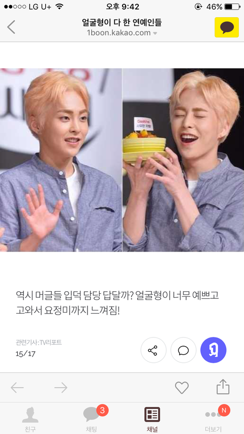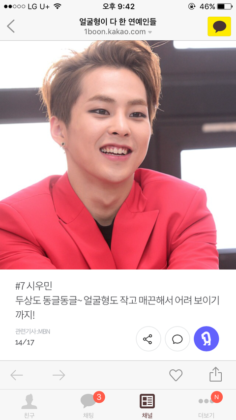 백만불짜리 얼굴형을 가진 스타들 이라는 제목이 있길래 우리 민석이 동글동글 엄청 예쁜데 하면서 들어갔는데 진짜 있어서 놀랐어.