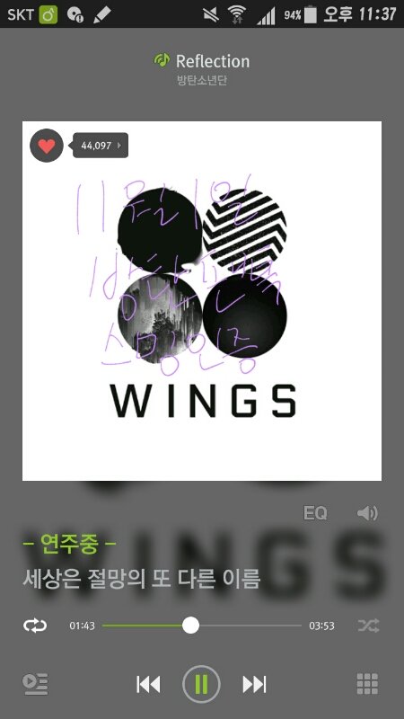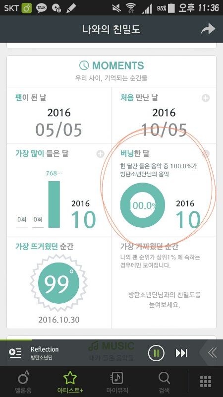 10월 한달동안 방탄노래만 들은거ㅋㅋㅋㅋㅋㅋㅋ (수정했오 미안♡) 다른노래 한번도 안들어봄ㅋㅋㅋㅋㅋ 다른 이삐들은 음원사이트로 타가수 노래듣니