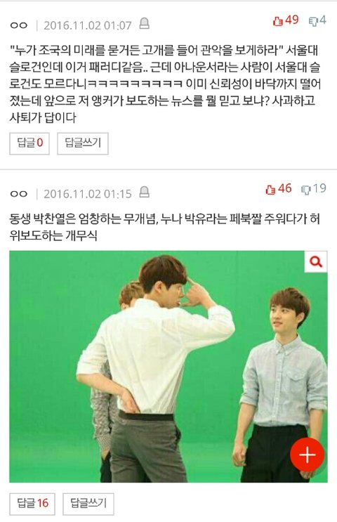 엑소팬들은 그저 박유라가 엑소 찬열 친누나라는 이유만으로 쉴드치고자 공중파 뉴스를 모욕하고 허위사실 퍼트리는거임