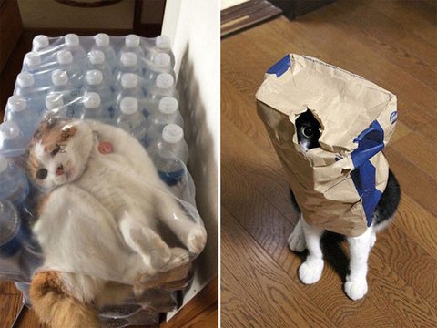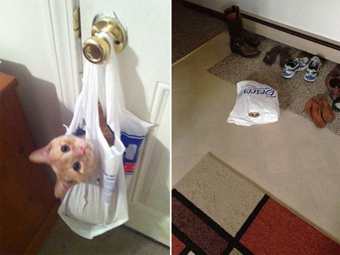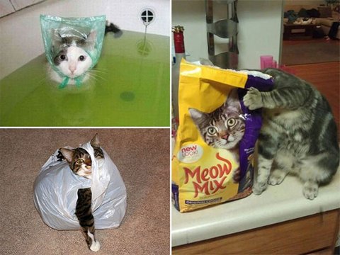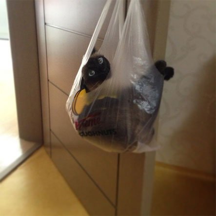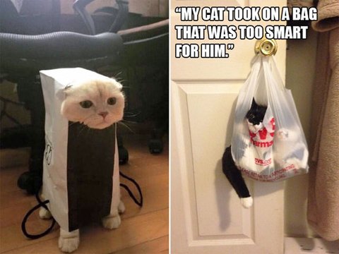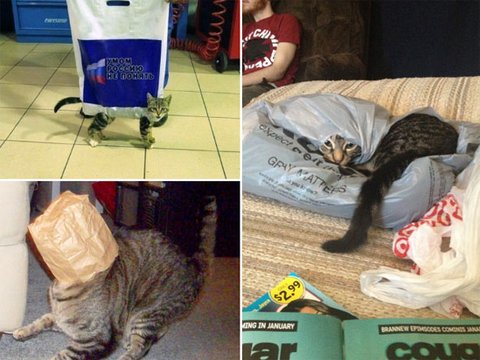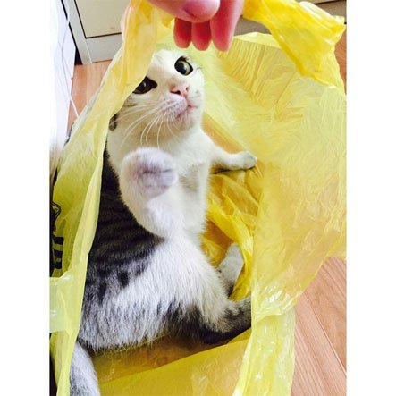 벗어날 수 없는 냥이 vs 쇼핑백