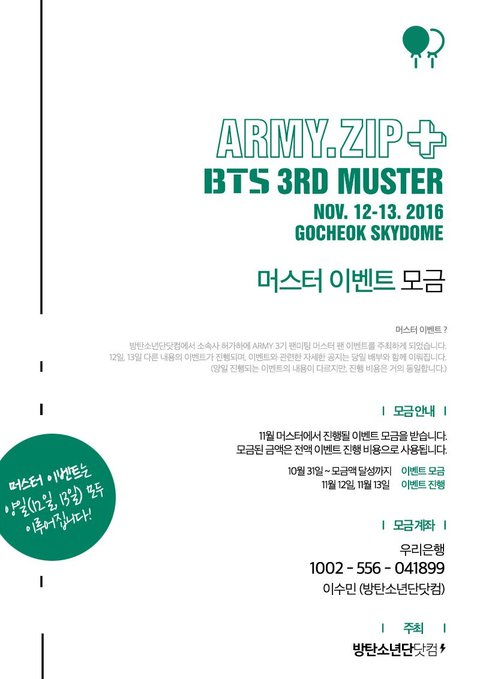 이번 3기 머스터 이벤트 방1닷에서 모금중이래! 낼 하러 가야겠담 낄낄