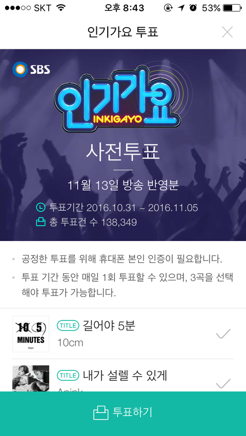 가수님들 투표 하면됭ㅎㅎ