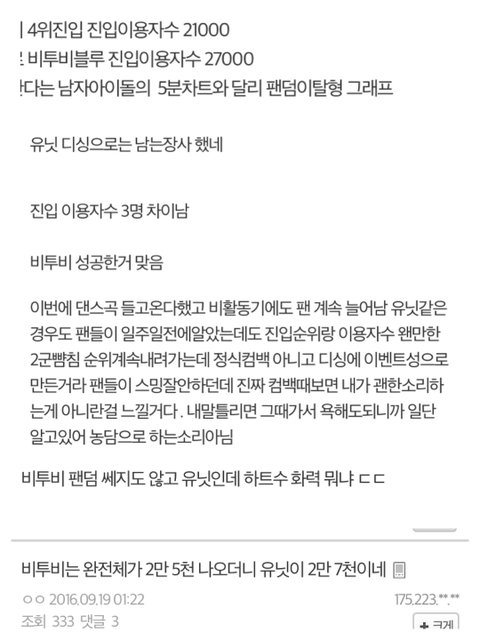 +) 우리유닛이랑 같이 컴백한 타그룹이랑 이용자수비교