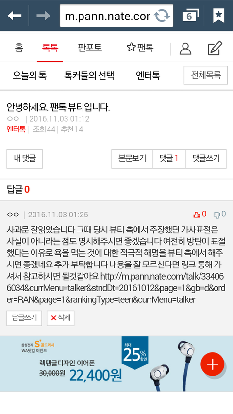 이삐들 ㅂㅌ분들 사과문에 댓글달았는데
