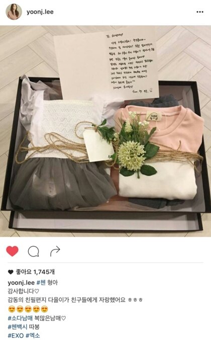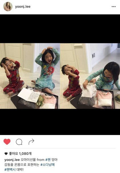 바쁜 스케줄일텐데 선물은 언제 준비했대? 하여간 맘도 이쁜 체니첸! 아동복 고르는센스가 거의 애기엄마급! 옷 넘 이쁘잖아!!? 소다남매 좋겠다.