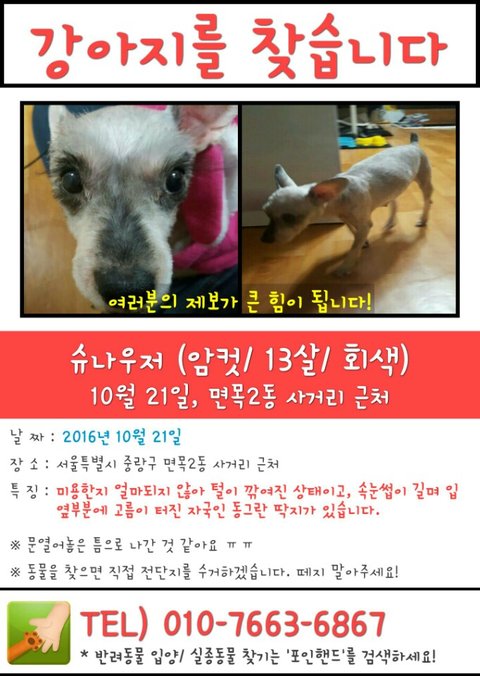 제발 저희 강아지를 비슷해도 좋으니 보신 분 보호중 이시면 010 7663 6867 로 연락주시면 감사하겠습니다 ... 사례는 꼭 하겠습니다