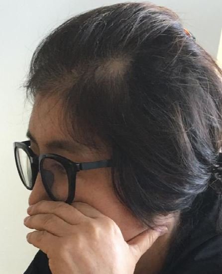 오른쪽 눈썹은 짙지 않다고 의심되는 사진.