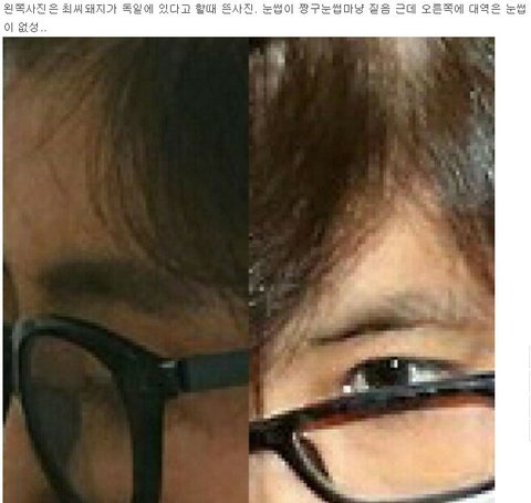 사람들이 이 사진을 놓고 비교하면서 왼쪽은 최순실이 아니라고.