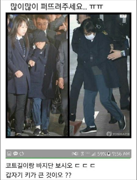 오른쪽은 구속될때 대역같다고 의심하는 사진인데요.