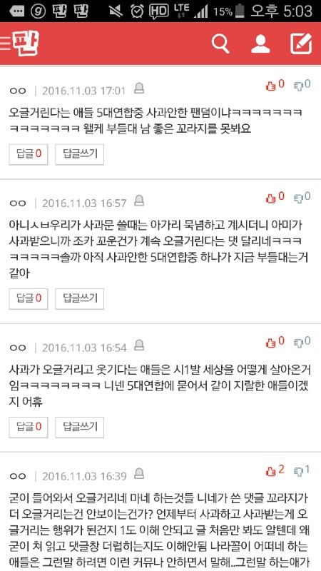 저기 댓글내용 우리 맞지ㅎ 왜 우리보고 지랄이야 웅? 엑소엘 실명제~~