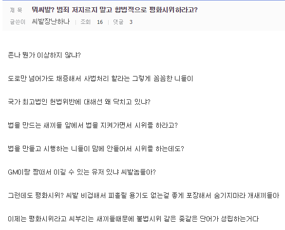 합법적으로 평화시위 하라고?