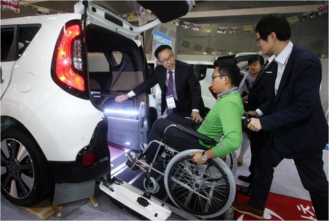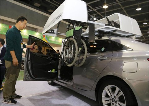 휠체어를 차 안에 들어가도록 하거나, 차량 지붕에 올릴 수 있도록 개조했네요.