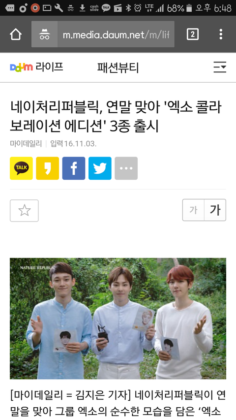 카카오스토리 보내기