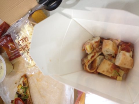 저번에 미스터피자 먹고 남은 피자랑 남은피자로 요리 해먹는 거라고 해서 리쿡이라는 것도 주문했는데 이렇게 무슨 팩같은거에 치즈랑 토마토 소스랑 고구마샐러가 있네용!ㅋ