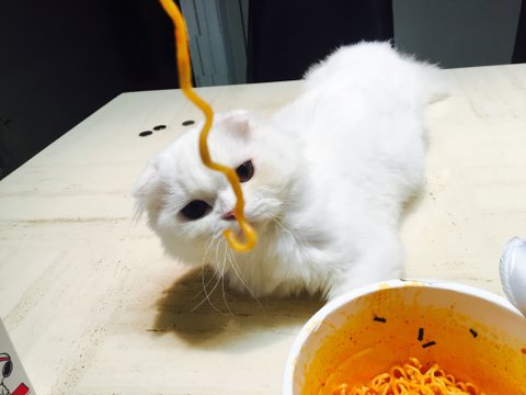 불닭볶음 먹는데 자꾸 앞에 누워서 툭툭 치려고하고