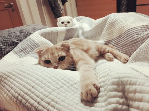 스코티쉬폴드(갈색) 하이랜드폴드(하얀색) 2마리를 키우는데