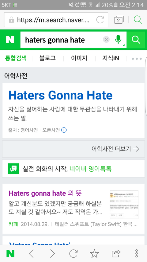 (초반에 난 걔카톡 지운상태 차단도당함ㅋㅋ) 근데 보면 니가빡칠거같다고안갈쳐주더라 첨엔 ㅈㄴ궁금해서 재촉해서봤더니 haters gonna hate 뭐이딴거데 뭔지몰랐는데 검색해보니 자신을 미워하고 욕하는사람한테 무관심을 표하는말이래 시밬ㄱㄱㄱㅋㄱㅋㄱㅋㄱㅋㄱㄱㅋㅋ 진심 요즘 멘탈관리개잘하고있었는데 새벽에저말전해듣고 진심 개빡침
