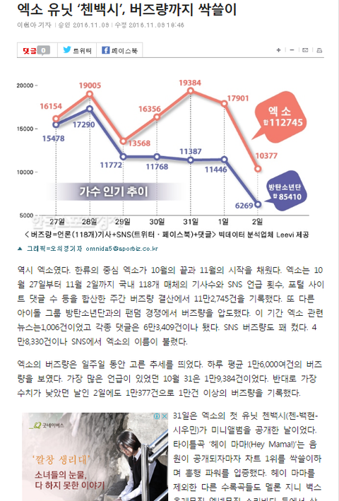 엑소 유닛 첸백시, 버즈량까지 싹쓸이(한국스포츠경제)