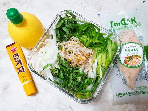 가끔 월남쌈도 싸가곤 했는데 이건 닭가슴살 겨자냉채? 예요 ㅎㅎ