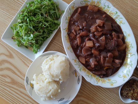 친구가 집에 놀러온다고 해서 남은 와인 탈탈 넣고 두어시간 푹 끓여준 비프브르기뇽?ㅋㅋ