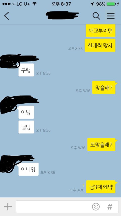 남사친이 애교를 너무 많이부려서 애교부리면 한대씩 맞기로했거든요? 제가 갠적으로 애교를 싫어해요...ㅎ 그런데 왜저럴까요 정말기분이 뀨 하네