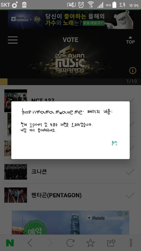 12시 되자마자 5개 하고 계정 생ㅈ성 안되서 웆우정거장 공유 계정으로 5개 정도 더 했는데 저거 뜨고 투표 안되는데