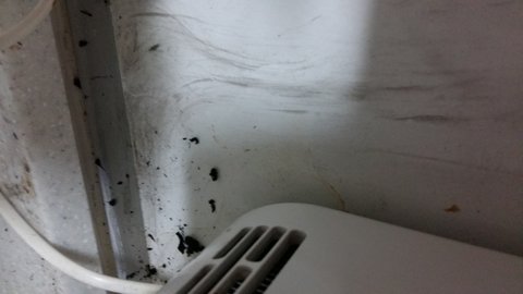 점검을 마치고 돌아간 뒤 설거지를 다 마치고 주방 정리를 하는데 정수기 주변에 뭔가 시꺼먼게 보여서 정수기를 움직여보았습니다.