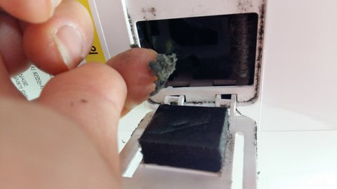심지어 렌즈라고 공기를 감지하는 부분을 열어보니 새까맣길래 스폰지인가 하고 손가락으로 만져보니 먼지덩어리들이 쏟아져나오더군요.