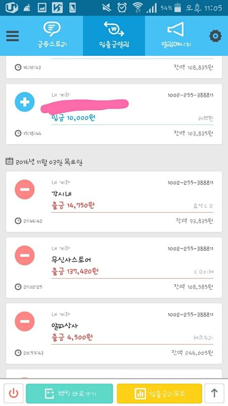 11월 3일, 4일 입금현황입니다